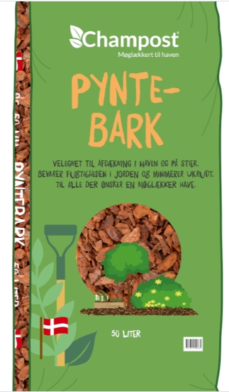 Champost® Pyntebark er fra de fransk pinjetræer. Den er utrolig dekorativ i krukker både ude og inde. Den fremhæver blomsterne og de grønne planter. Det er 100 % naturprodukter og biologisk nedbrydelig.