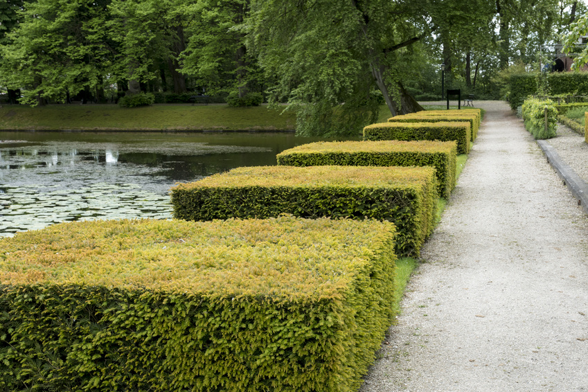 Takshæk plantes relativt tæt for at opnå en kompakt hæk.