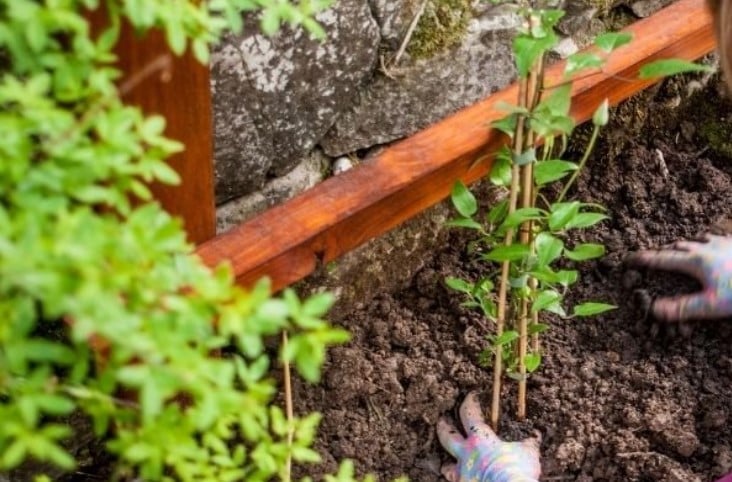 Da klematis ikke har torne eller sugende rødder til at holde sig fast med, men bladstilke, som kan slynge sig om en snor, er det relevant at tænke på at montere en snor eller vire i forbindelse med plantningen.