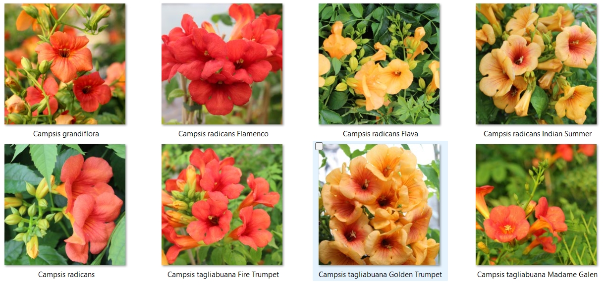 Forskellige sorter af Trompetblomst