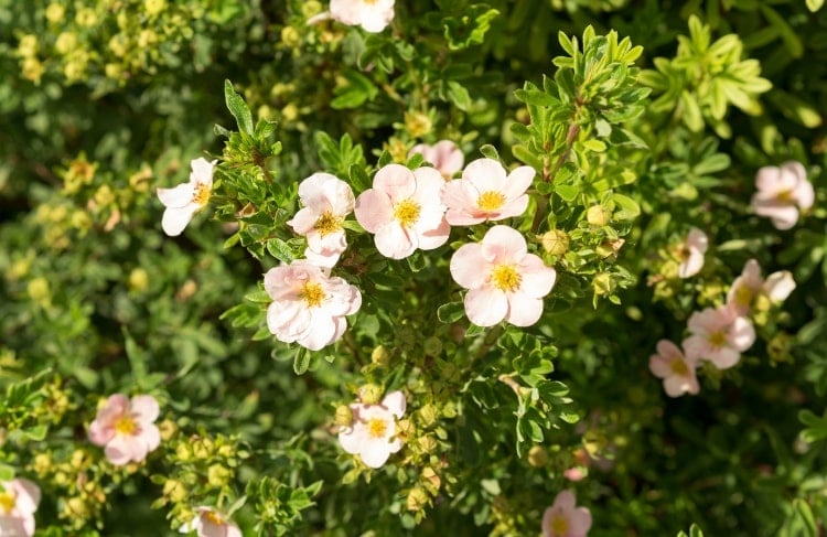 Potentilla plantes tæt for at opnå en kompakt, lav hæk.