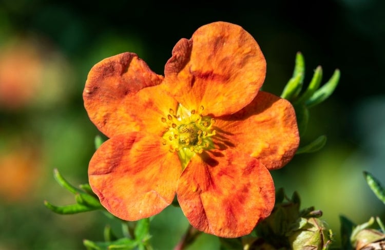 Fra juni og frem til oktober, mange små, klart gule blomster, der kan minde om jordbærblomster.