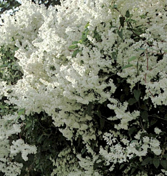Arkitektens trøst (Polygonum aubertii) er en af havens mest hurtigtvoksende slyngplanter og det oplagte valg, når du ønsker hurtig, frodig afskærmning. Med sin kraftige vækst og lette, hvide blomstring skaber den på kort tid grønne vægge og et naturligt, levende udtryk.