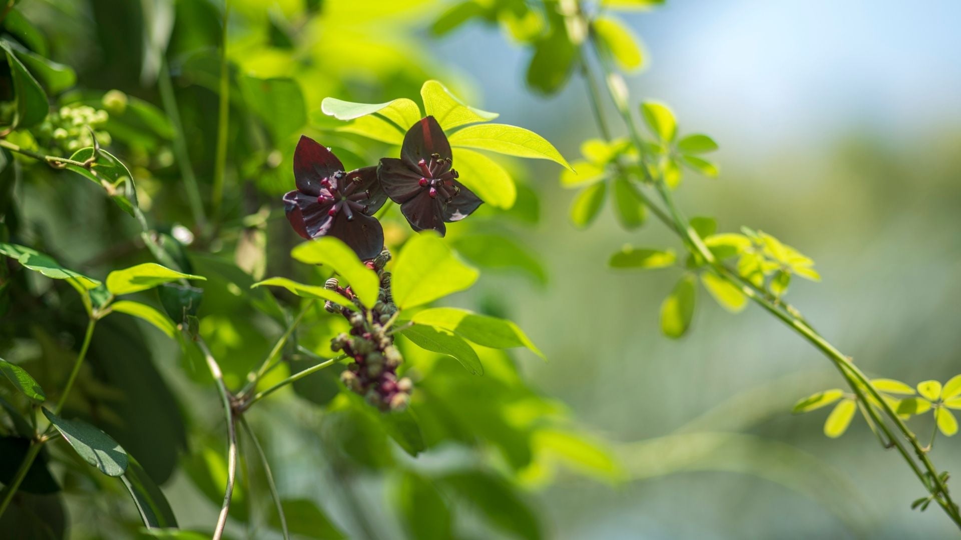 Femfingret akebia (Akebia quinata) er en elegant og hurtigtvoksende slyngplante, der giver haven et let og eksotisk udtryk. Med sine karakteristiske, hånddelte blade og smukke, mørklilla blomster skaber den en spændende og dekorativ effekt på hegn, pergolaer og espalier.